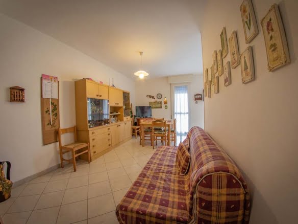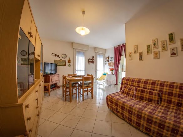 Four-room apartment for sale by the sea in Lido degli Scacchi, Comacchio. The apartment is located on the second floor in a condominium directly on the sea with common parking and elevators. The house consists of a large living room with balcony and separate kitchenette. A small corridor separates the living area from the sleeping area, where there is a double bedroom and a bedroom with two single beds and a bathroom with shower. The house has been recently renovated and has new floors and windows. € 105,000