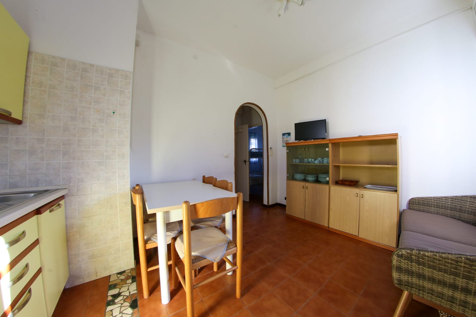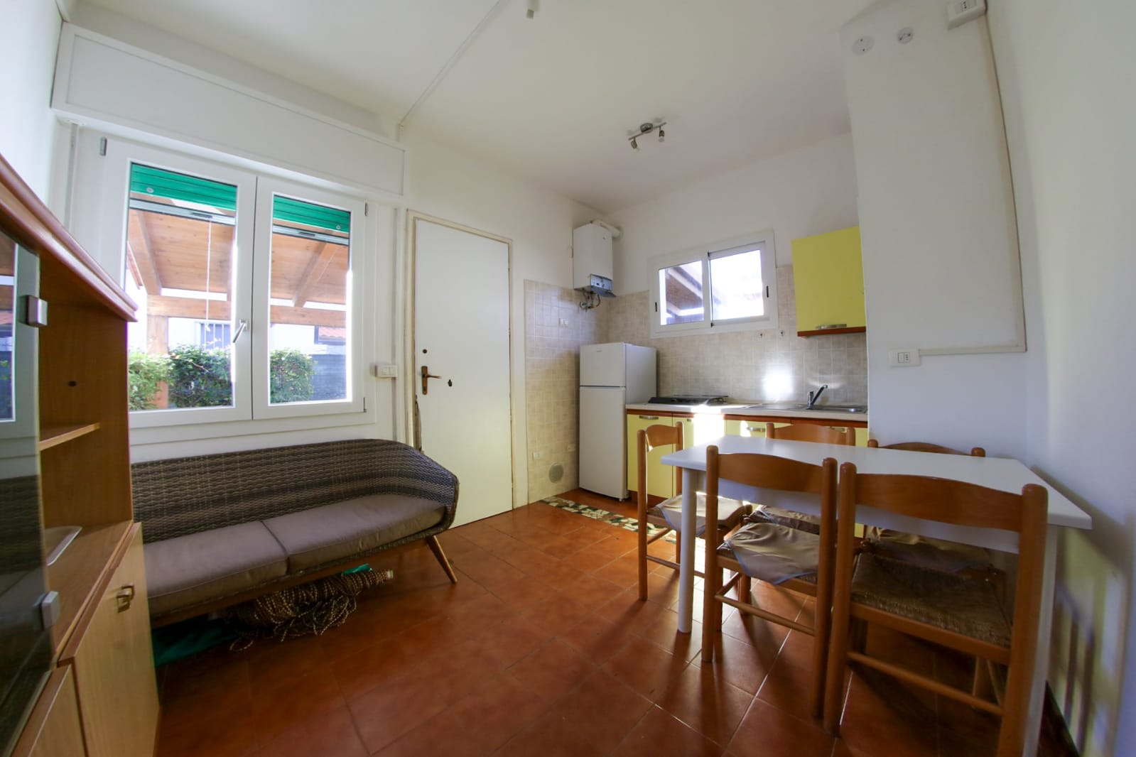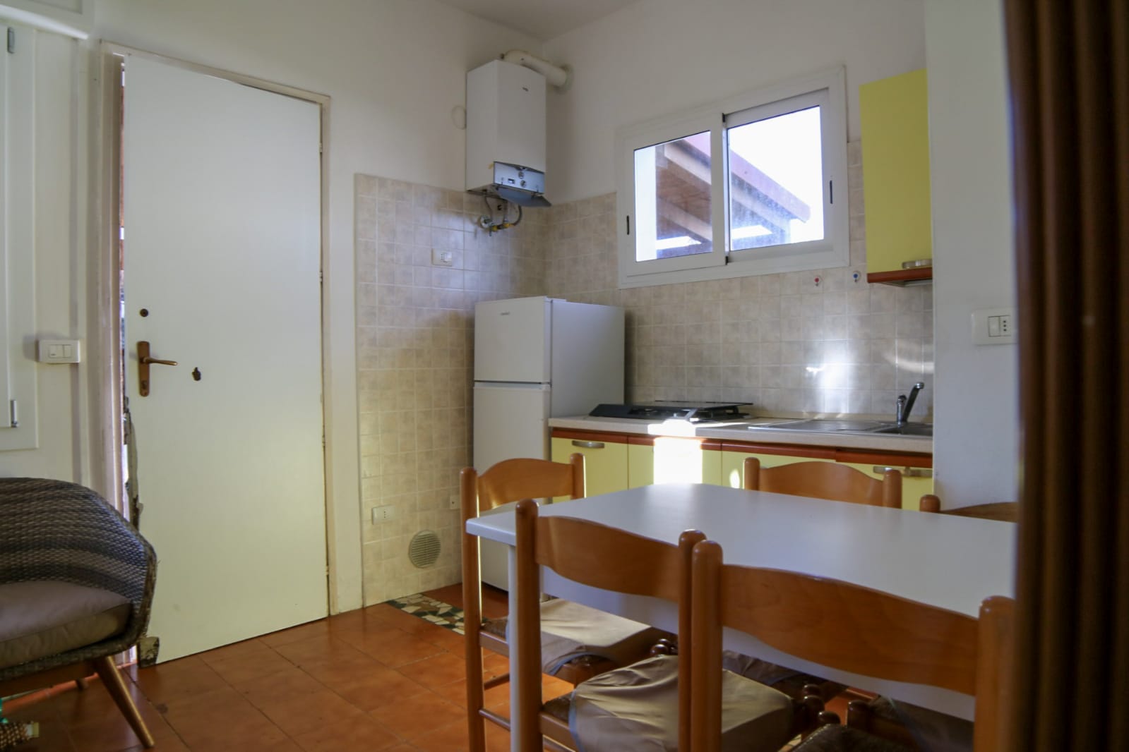 La casa vacanza è totalmente al piano terra ed è composta da soggiorno con angolo cottura, lavatrice, camera da letto matrimoniale, cameretta con due letti a castello, bagno con doccia.