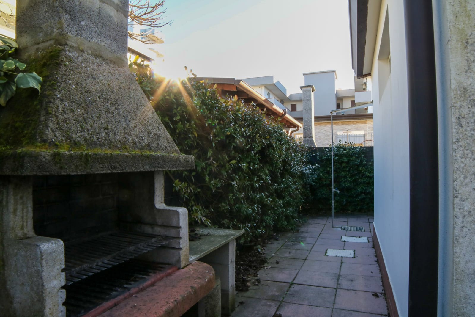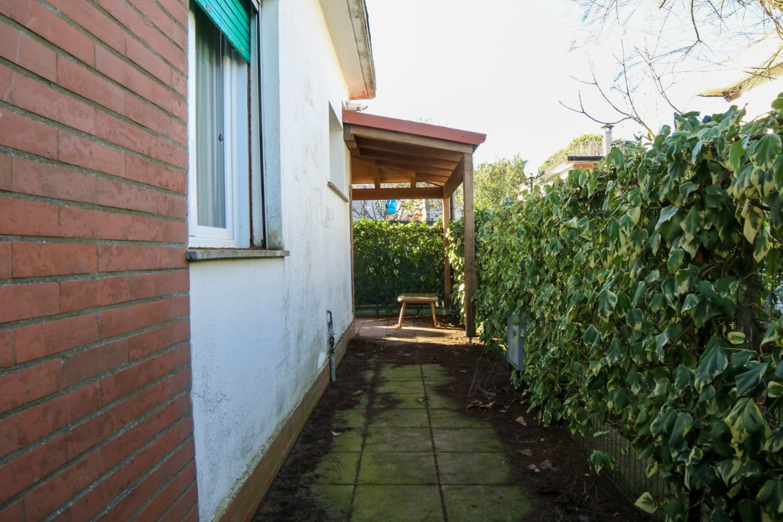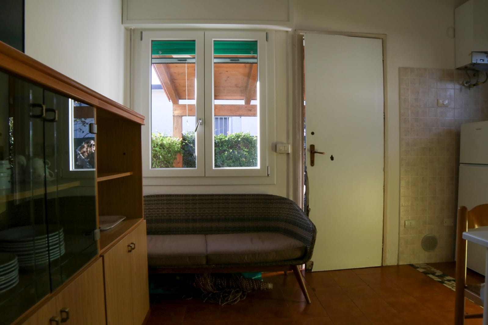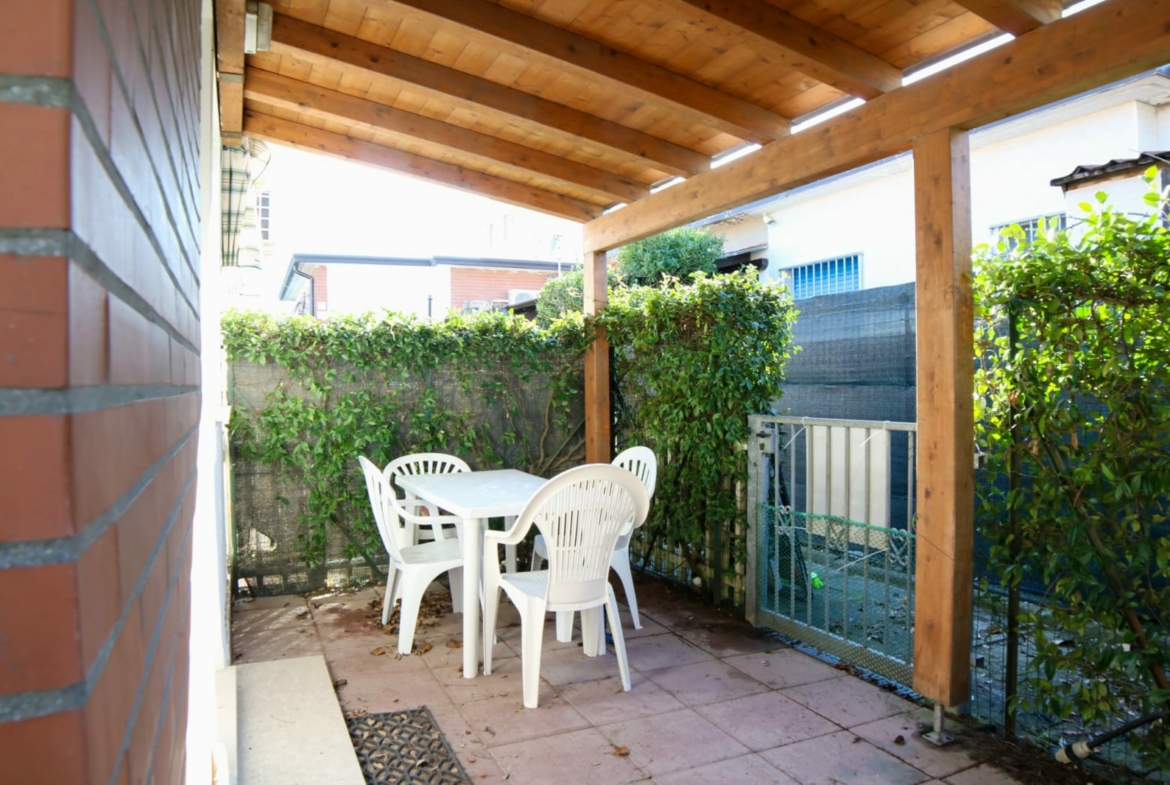 Posto auto coperto in garage. Giardino con veranda e zona barbecue. Ombrellone e 2 lettini inclusi.